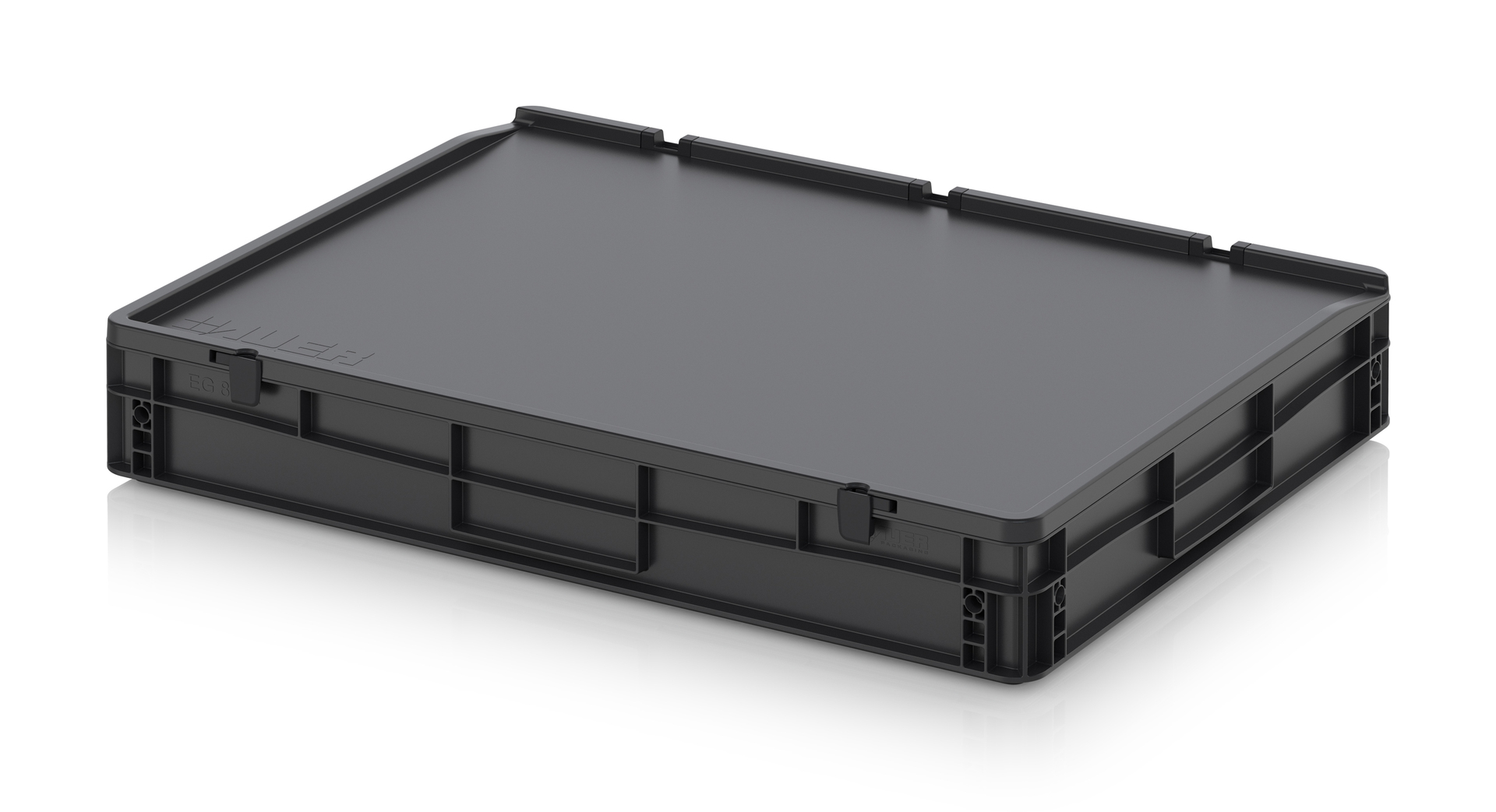 Евроконтейнер с ESD-защитой производства компании AUER Packaging изготавливается из антистатической пластмассы, что делает его пригодным, в частности, для надежного хранения и транспортировки электронной продукции.