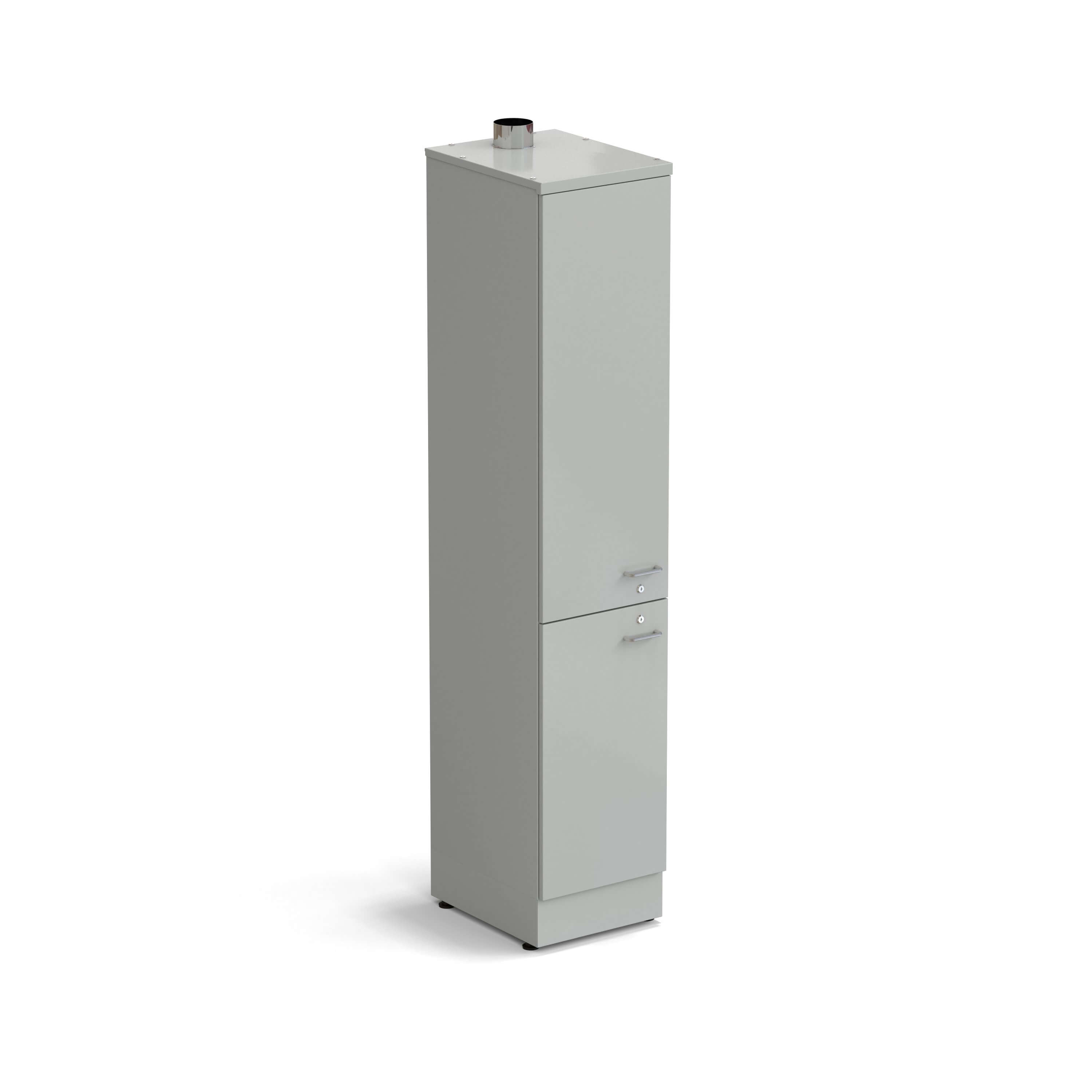 - Шкаф оборудован фланцем диаметром 100 мм для подключения к системе вытяжной вентиляции и имеет металлические дверцы, каждая из которых запирается на ключ;