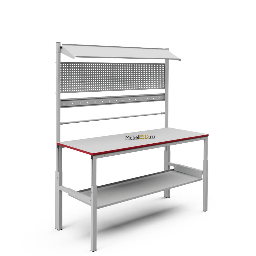 Базовый комплект КСУ включает в себя: широкую нижнюю металлическую полку с бортами для хранения упаковочных материалов, верхний держатель для рулона ДРВ, планку для лотков ПЛ, перфорированную панель ПП, и верхнюю металлическую наклонную полку с возможностью плавной регулировки угла наклона от 90° до 115°.