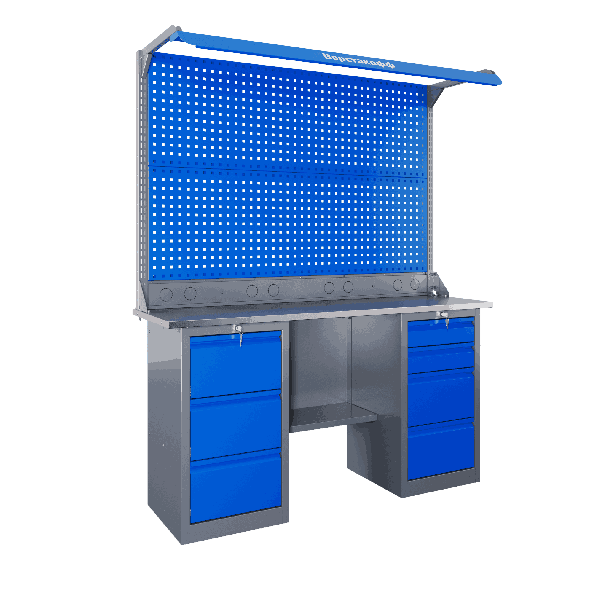 Самые компактные верстаки с глубиной столешницы 500 мм. Благодаря небольшой глубине, такие верстаки легко размещаются в ограниченных пространствах, например, в гаражах, мастерских и тд. Несмотря на компактные размеры, верстаки могут быть оснащены полками, ящиками и держателями для инструментов, что помогает поддерживать порядок и быстро находить нужные предметы.