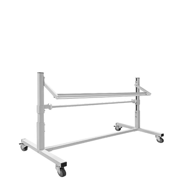 Каркас стойки для лотков выполнен из П-образного профиля, покрытого износостойкой порошковой краской светло-серого цвета RAL7035. Высота планок регулируется. Распределенная нагрузка на стойку — до 120 кг. Стойка оснащена четырьмя колесными опорами, две из которых с механизмом фиксации.