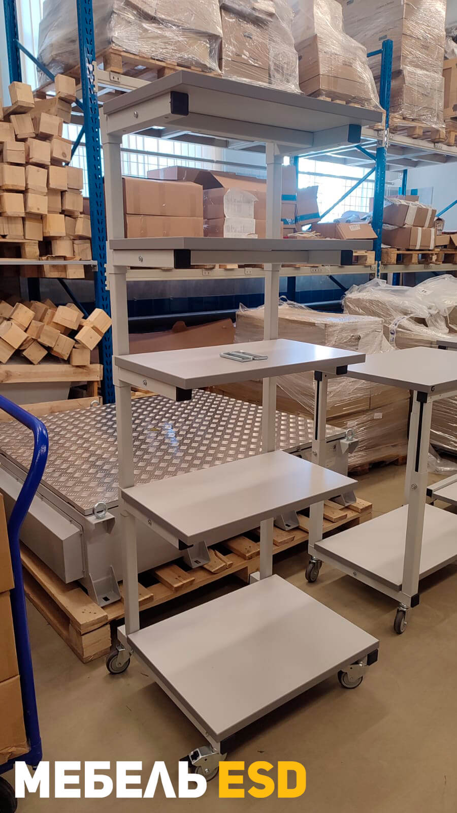 Стойка подкатная СОП изготавливается в общепромышленном и антистатическом ESD исполнении.