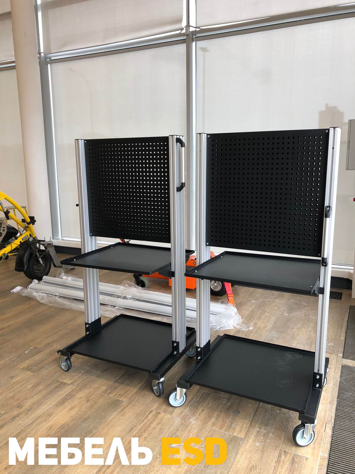 Стойка подкатная из конструкционного профиля СПЛ-КП изготавливается в общепромышленном и антистатическом ESD исполнении.